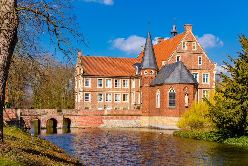Een andere prachtige waterburcht is Burg Hülshoff is Havixbeck, dat nog eens honderden jaren ouder is! Het 16e-eeuwse kasteel is extra bijzonder, want hier is de dichteres Annette von Droste-Hülshoff geboren (1797–1848). Tegenwoordig zit er een museum dat aan haar leven is gewijd. Het Hoff von Hulshove wordt echter al in de 11e eeuw genoemd, en de burcht is in de 17e–18e eeuw uitgebreid met barokke details.