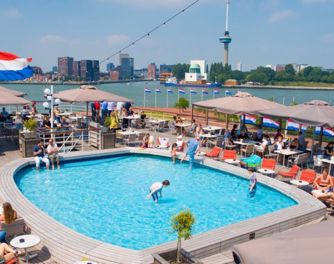 Overnachten op een cruiseschip met buitenzwembad in de haven van Rotterdam