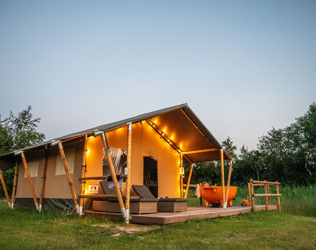 Unieke overnachting in een lodgetent op een Twentse boerderij incl. dagelijkse ontbijtmand met verse streekproducten
